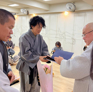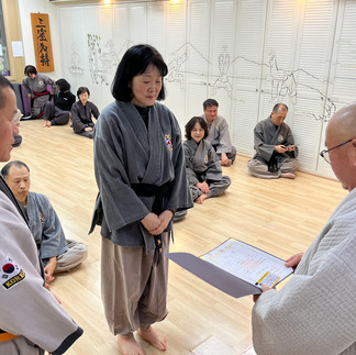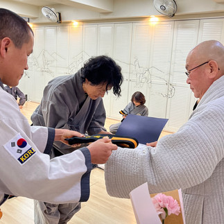 승단 하신 분들에게 큰스님께서 직접 단증을 수여 하였습니다.